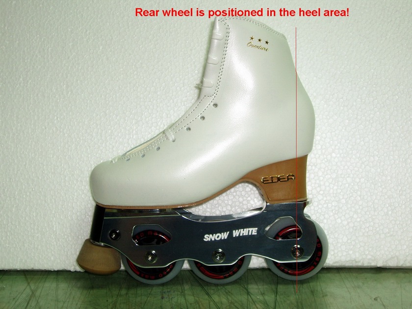 Вкратце - суть в том, что рама(называется SnowWhite) несет три колеса, расположенные на разных уровнях(для имитации дуги) и стопор впереди(который заменяет зубцы). Рама эта крепится в принципе на любые фигурные ботинки.