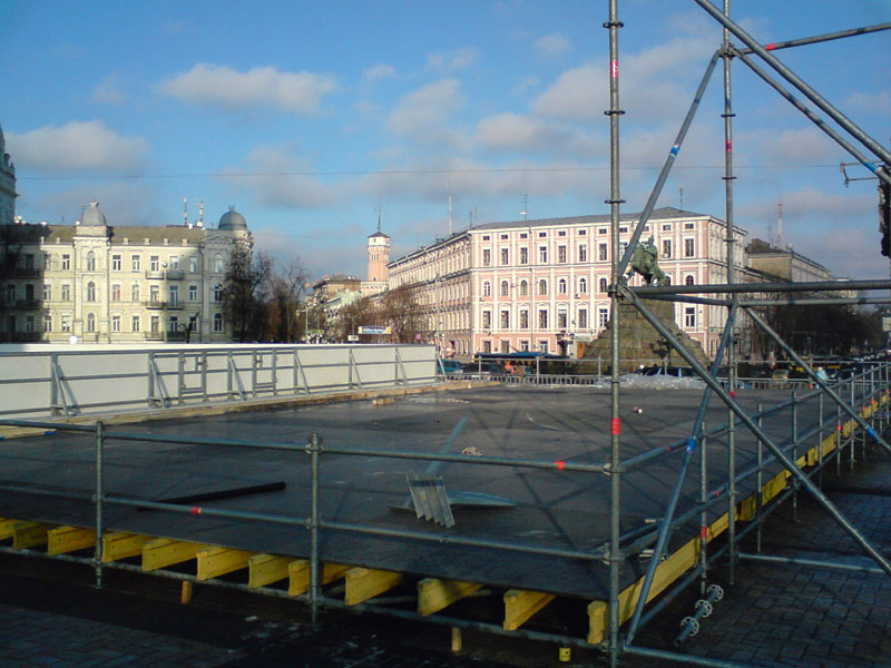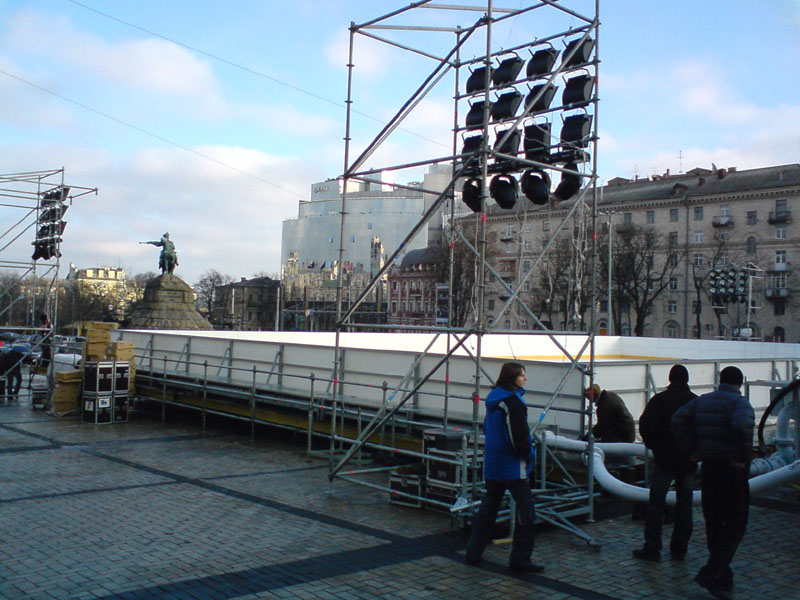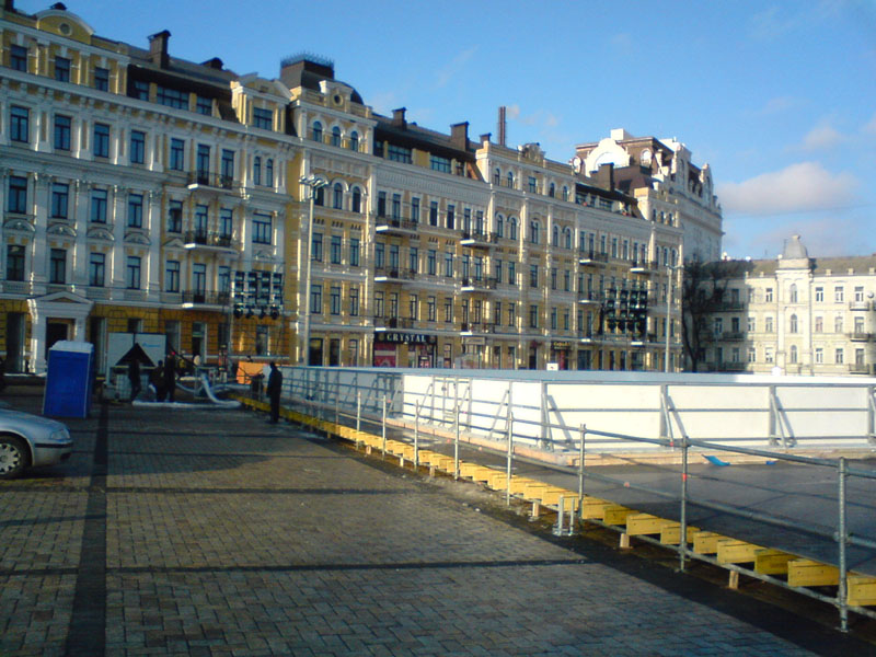 Ко входу подходило море людей, расспрашивали что да как. Выходила несколько раз женщина, разъясняла что да как, но основное время это делали охранники. Насчёт цен, вобщем-то, всё было ясно - катание бесплатное, прокат коньков - 25 грн. Я задавал вопрос - а откуда, собственно, смотреть открытие, если изза бортиков ничего не видно. Охранники заверили, что в 16:00 к бортиками будут пропускать. Но по прежнему оставалось неясно - очередь стоит к кассе, но причём тут касса к открытию?