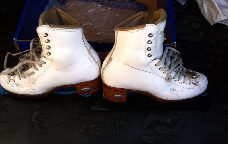 Продаются коньки Riedell белого цвета, полнота C/B, размер 5 1/2, по стельке 24 см, модель для двойных-тройных прыжков. Ботинок целый ( не поломанный), единственное- сверху носы покоцанные, лезвия WILSON CORONATION COMET. Цена адекватная состоянию коньков. Находимся в Харькове. Все вопросы по телефону : 067-974-92-05