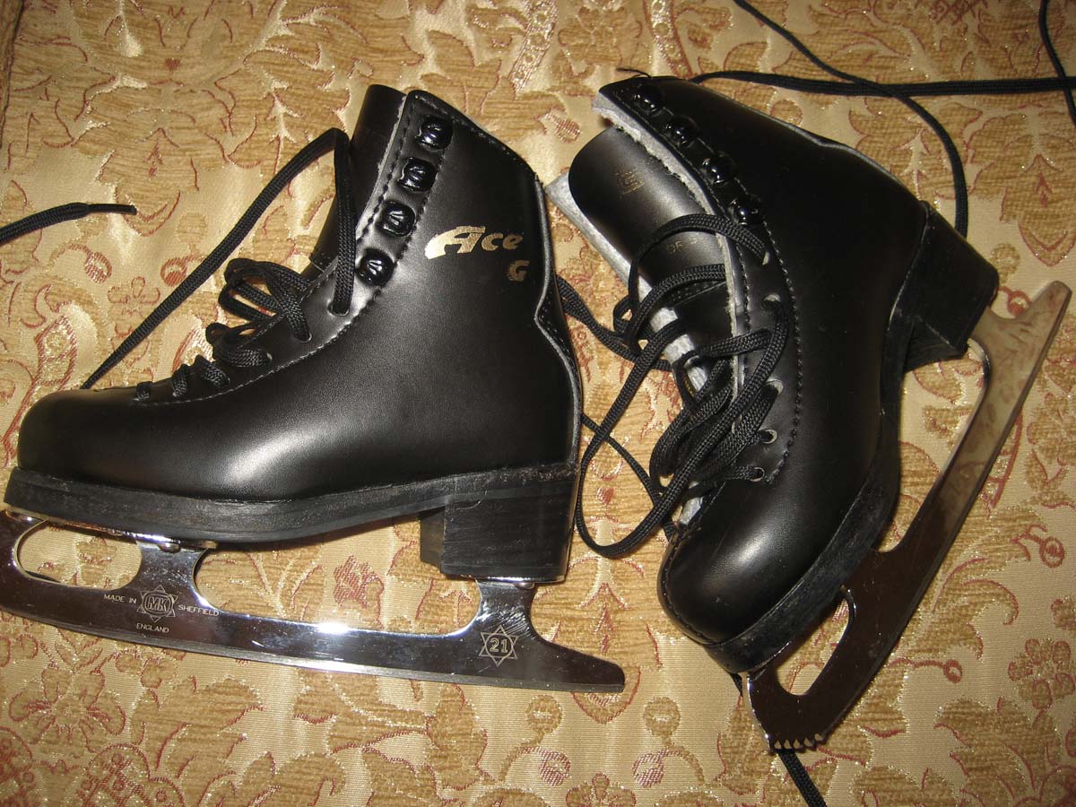 Продам коньки фигурные черные Graf Ace (Швейцария, лезвия - МК 21, Англия) для первого и второго годов обучения - 1200 грн Размер – 9L Длина по стельке – 16,5 см Максимальная ширина стельки – 6 см (ножка у дочки узкая, но чувствовала в этой полноте себя прекрасно) Дочка каталась в них с нуля, один сезон. Катались в чехлах, состояние очень хорошее! Фотографии во вложениях