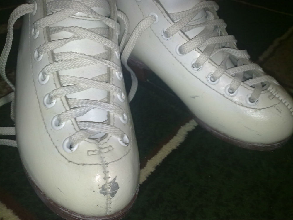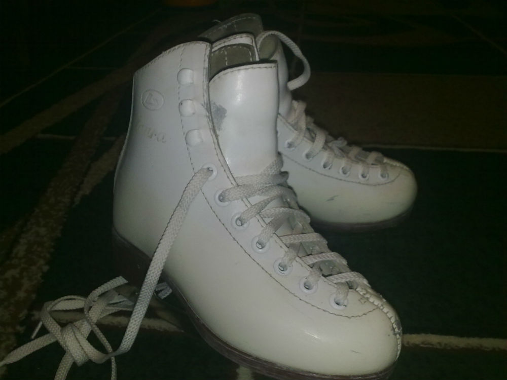 Продам фигурные коньки Botas Laura 31 разм,20,5 см по стельке,полнота G,состояние хорошее,немного сбит нос правого конька,(потом ,пока не купили чехлы на ботинки,низ ботинок был обмотан скотчем(что б не сбивать),эти места немного пожелтели )на фото видно
