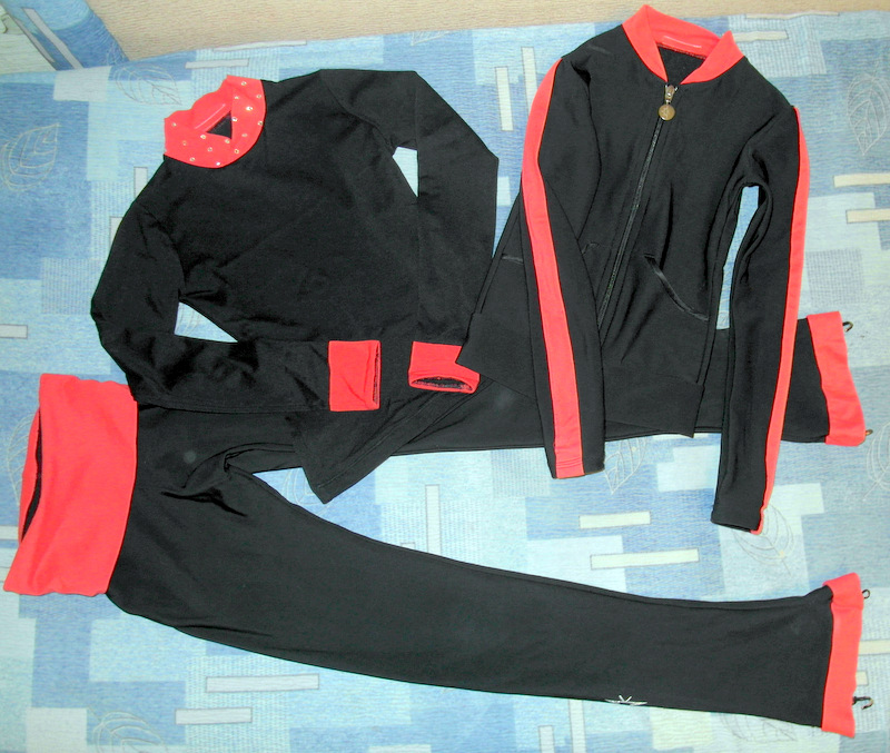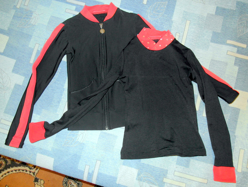 Продам тренировочный костюм Каризма (Karisma) (Италия) XS+ на 6-8 лет (рост от 120 до 134). Термо - лосины, реглан, разогревочная кофта. Цвет чёрный с алой отделкой (ярко-коралловый). На горловине реглана стразы Сваровски. Состояние отличное. Чёрные флисовые чехлы в подарок. Замеры: лосины вся длина 86, шаговый шов 68 см, талия 23 см. Хорошо тянется, отлично облегает. Реглан: рукав 46 см, по спинке 43 см, полуобхват груди 31 см. Разогревочная кофта (на молнии): рукав 46 см, спинка 42 см, полуобхват груди 29 см. 067 129 40 58 Анна
