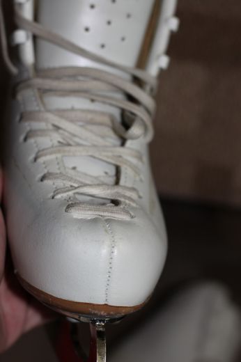 Продам коньки фигурные белые Edea Chorus, 20 размер, по стельке 18,5 см. Лезвие Axel. Состояние коньков и лезвия отличное. Ботинки были под защитной лентой и чехлом. Откатались год, нога выросла. Также есть в продаже термокомбинезон на 3-5 лет красного цвета. Цена: 1200 грн за все. телефон: 0503354052, находимся в Киеве.