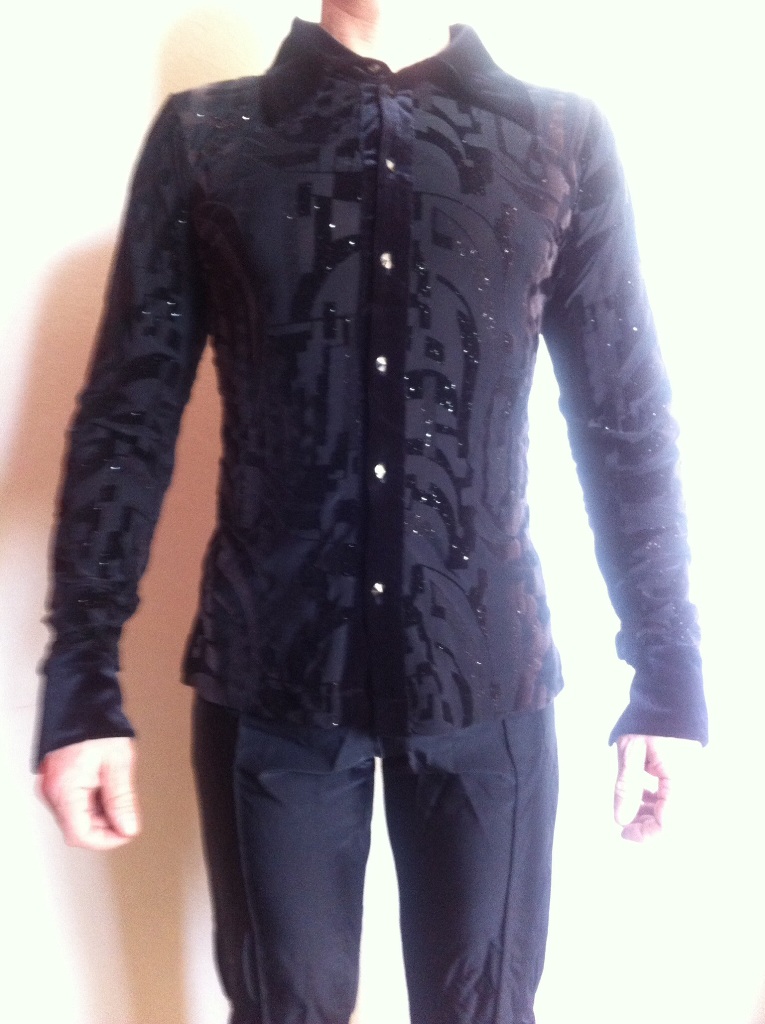 Продам костюм новый р.46-48. Черный. Для выступления. Мужской. Штаны- бифлекс черный. Рубашка черная с плотного кружева. т.0677529981