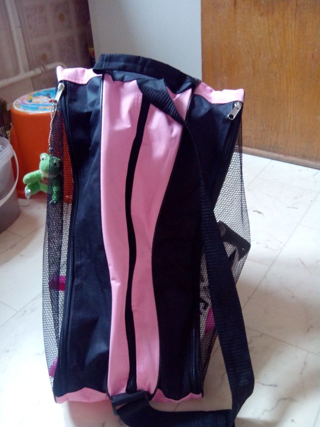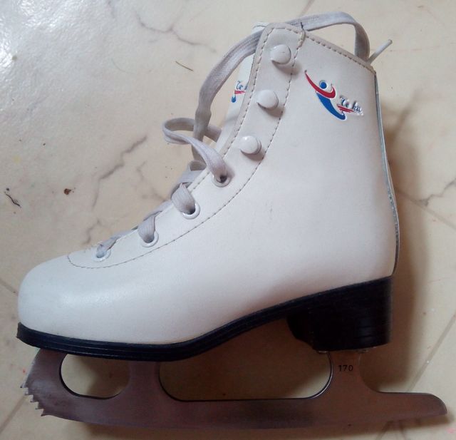 Набор для юной фигуристки: коньки (Китай, размер указан 28, по стельке 18 см), практически без следов носки; защитные раздвижные чехлы на лезвия, розовые;сумка для коньков, носилась где-то 5 раз, вместительная(вместимость больше чем у риспорта на одно плечо), состоит из трех секций; чехлы из искуственного меха для транспортировки коньков и махровая тряпочка для протирания лезвий.И еще плюс игрушка - лягушка на коньках от марки Идеа.