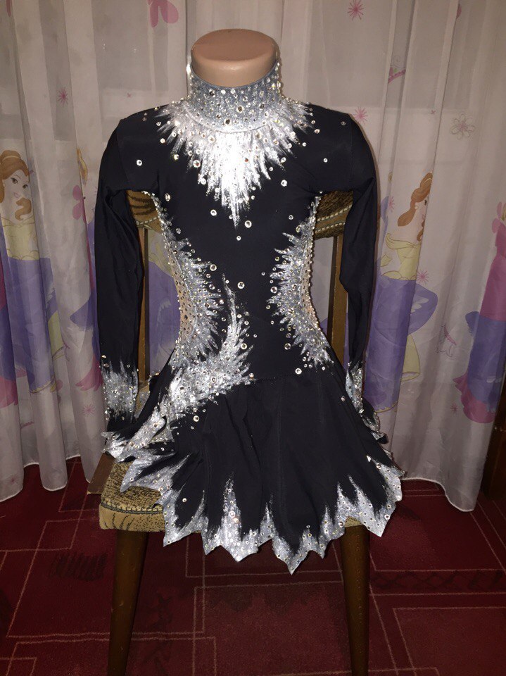 платье сине-голубое (бифлекс и сетка), камни стекло и акрил, цена 1200,00 грн., платье чёрное (бифлекс), раскрашено красками для ткани (стирка 30-40 градусов), камни стекло, цена 1000,00 грн., ТОРГ, тел.0956338363