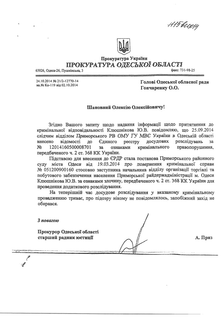 Просим общественность, обратить внимание на тот ФАКТ, что к должности директора школы, был допущен человек, который привлекался к ответственности по уголовному делу по ст.368 ч.2 УК Украины и в данный момент также находится под следствием ! Мы категорически против того, чтобы к образованию наших детей, был причастен человек, который своими действиями нарушает принципы верховенства права и законности, подрывает демократические ценности нашей страны.