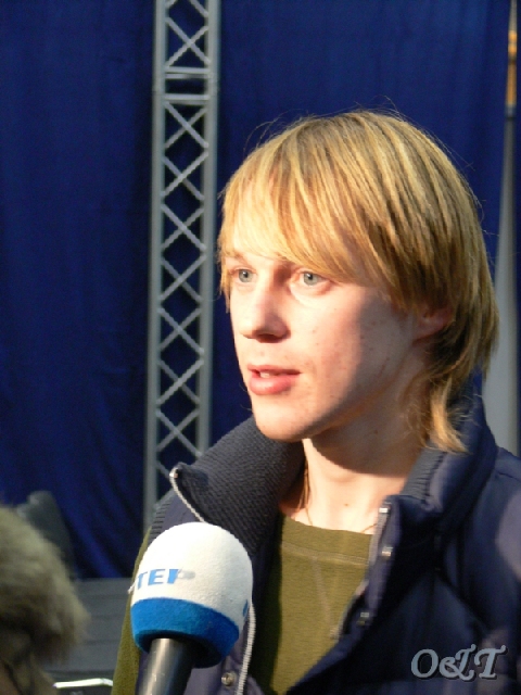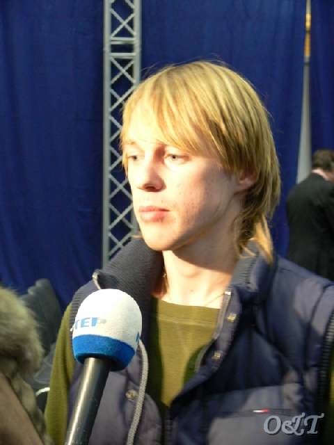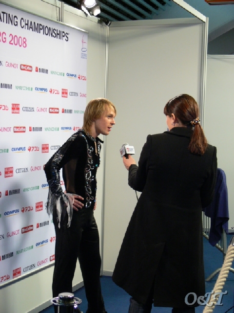 А это после жеребьевки короткой программы Антон делится впечатлениями с журналистами и зрителями "Интера"