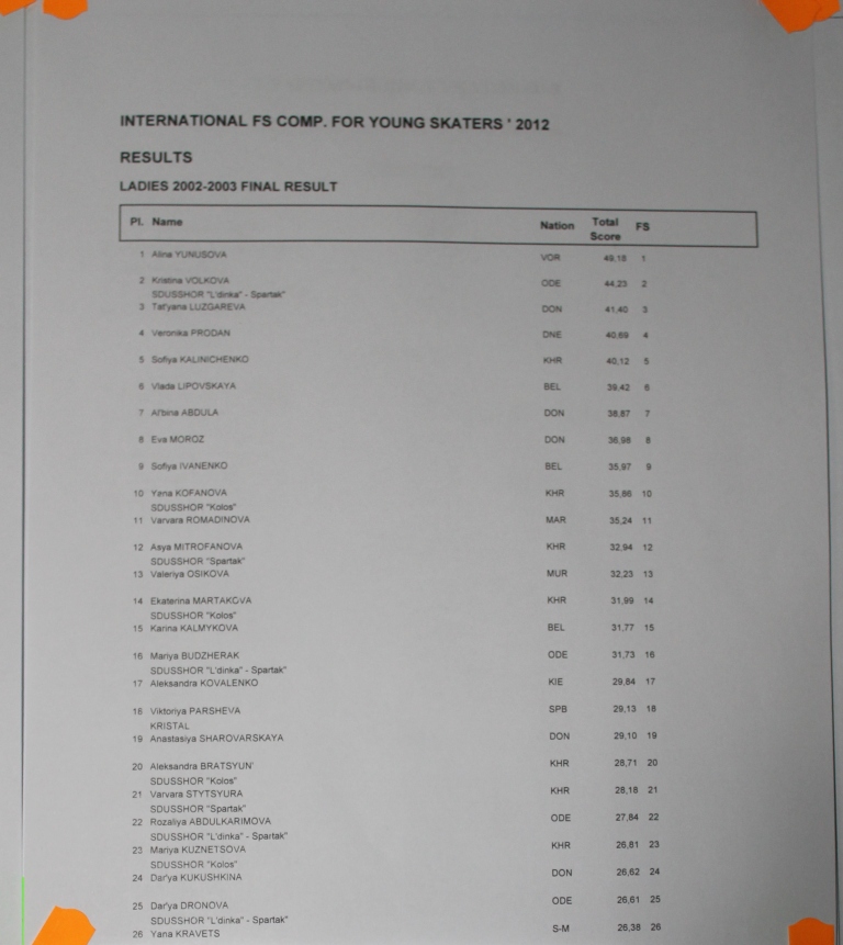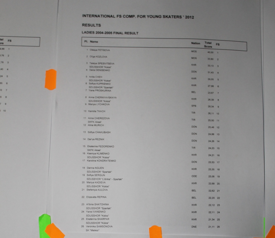 Вот сфотала результаты девочек , качество фото не очень , но рассмотреть можно