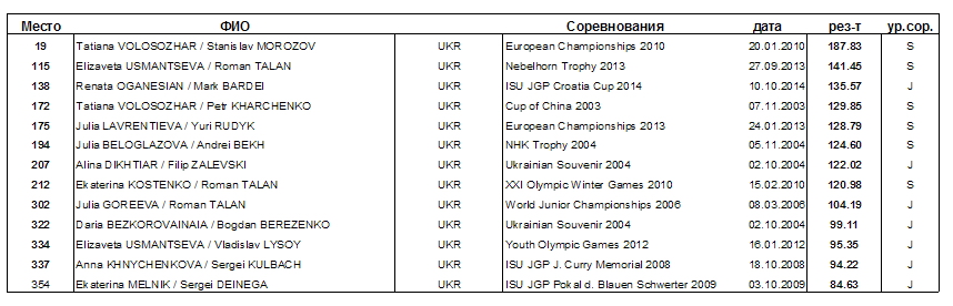 Спортсмены. За всю историю парного катания после изменений системы судейства в 2004, а это 10 лет в парном катании только Волосожар - Траньков показывали лучший результат чем Усманцева - Талан.