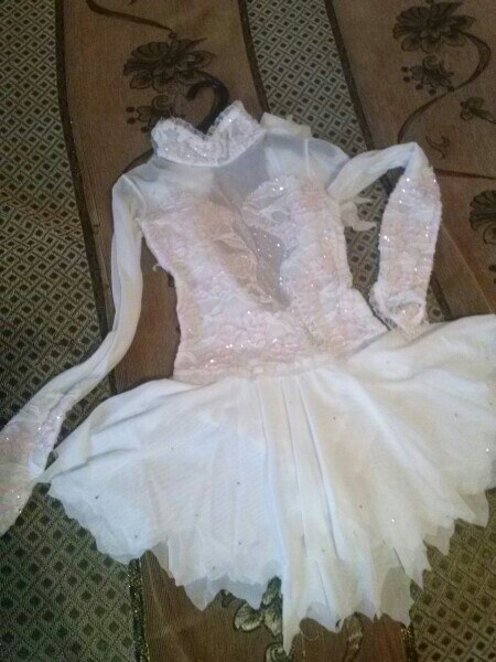 3) пошито из итальянской сетки и кружева стрейч белого цвета украшено камнями св. и расшито нежным розовым бисером, цена 1000,00 грн., рост 125-135 см; здесь можно посмотреть, как смотрится на льду: