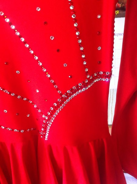 Платье из красного бифлекса с сеткой, камни сваровских красные и кристал (около 700 шт) - 700 грн
